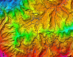| 山間谷底平野 | 山間部の谷底に見られる平坦面で沖積錐・段丘面を含む。 上流末端部 | 3.いりの | |