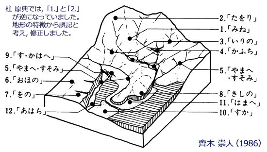 | 微地形と集落空間に関する分類 [齊木(1986年)に若干加筆・修正] |