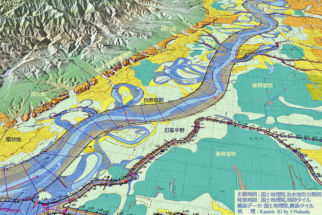 | カシミール3D と 治水地形分類図 [石狩川中流域の例] |