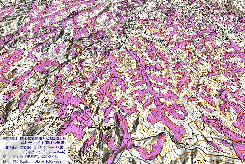 | カシミール3D と 自作ラスタタイル [大規模盛土造成地図の例] |