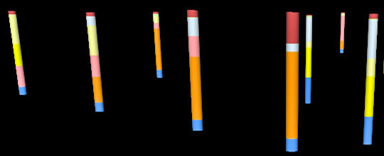 ボーリングモデル ・簡略柱状図に三次元座標を付与したモデルで,通常は,中身の詰まった円柱として表現します。 |