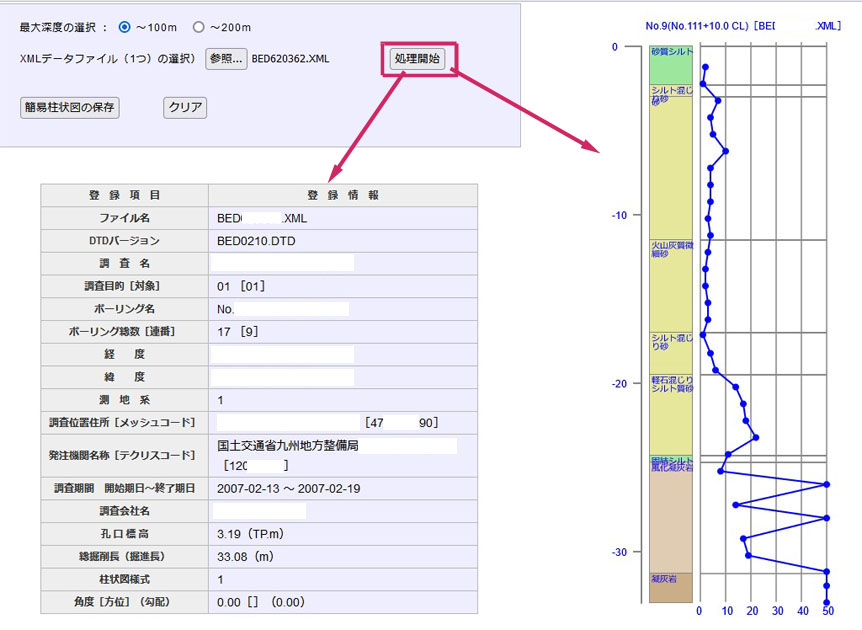- 描画上の最大深度は「100m」または「200m」のいずれかになります。 200mより大深度のボーリングには対処していません。