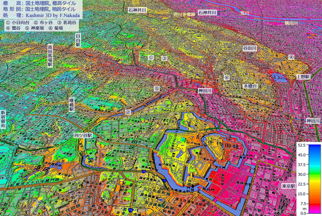 | Kashmir 3Dによる「風景あるくの記」の再現 : 東京,山の手と下町(北部) |