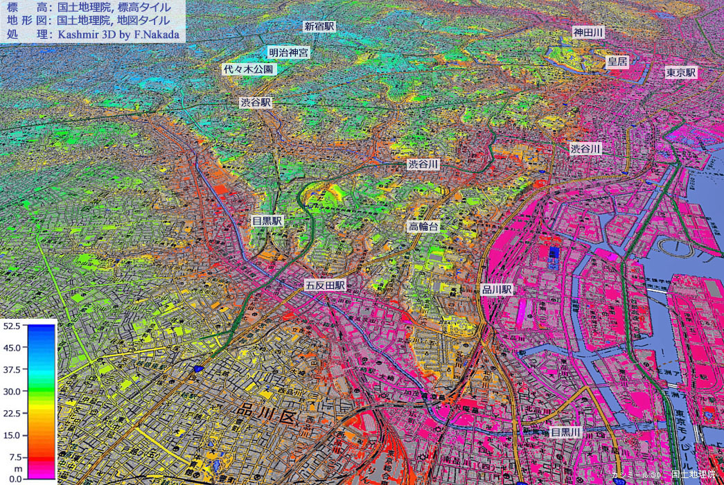 | Kashmir 3Dによる「風景あるくの記」の再現 : 東京,山の手と下町(南部) |
