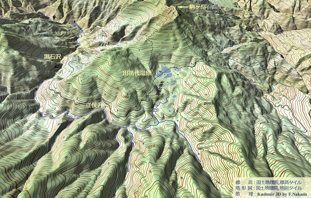 | 地形の三次元イメージ : 駒ヶ岳・田苗代湿原(地すべり) |