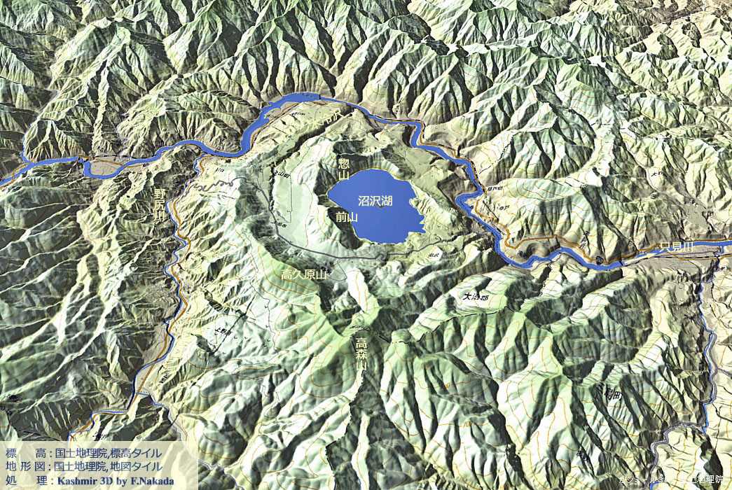 | 地形と地質の三次元イメージ : 沼沢火山 |