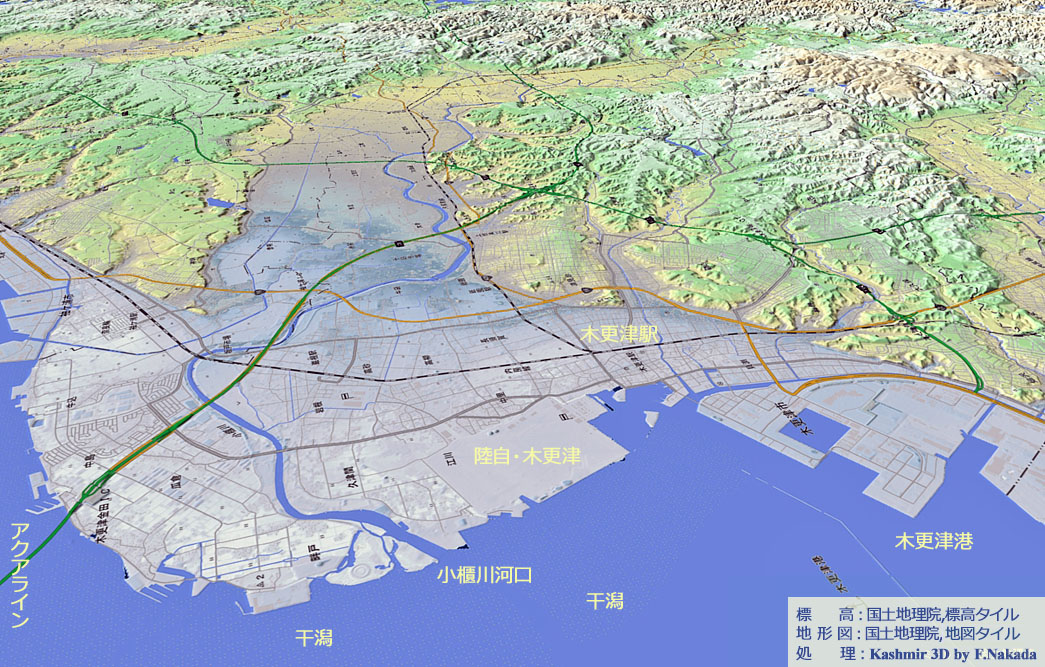 | 地形の三次元イメージ : 小櫃川河口とその周辺部 |