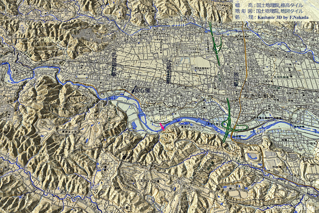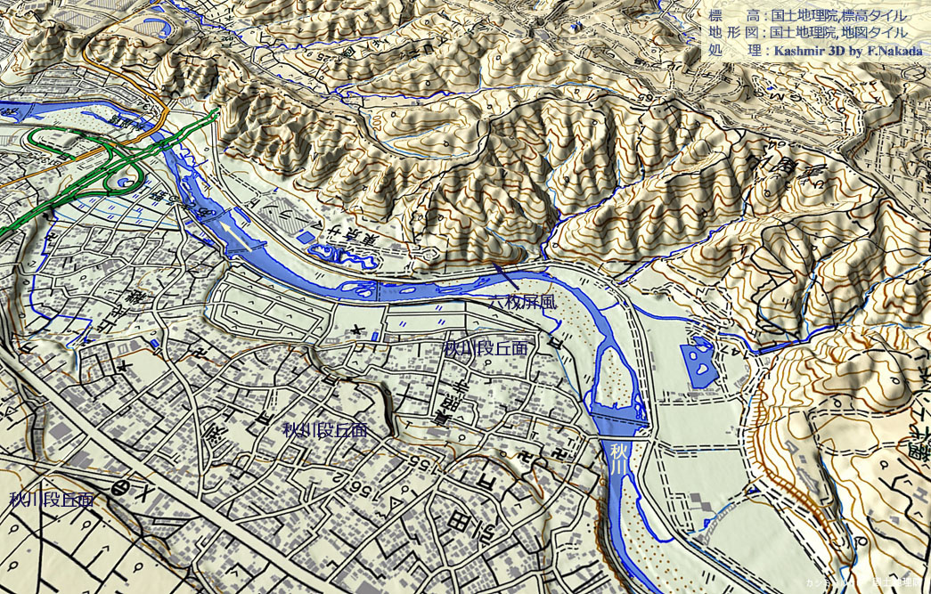 | 地形の三次元イメージ : 六枚屏風とその付近 |