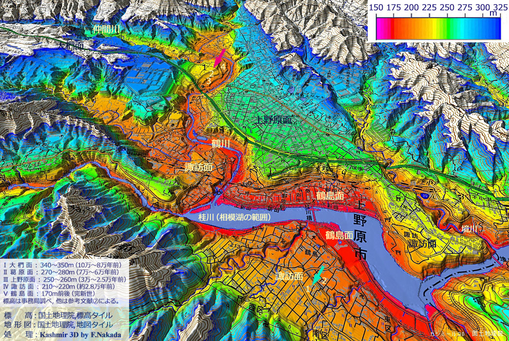 | 地形の三次元イメージ : 上野原市街地の河成段丘 |