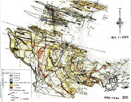 ![]() 画像のクリックで空中写真を表示します。 ダブルクリックで元に戻ります。 地質図と空中写真の「縮尺と方位」は一致していません。 |