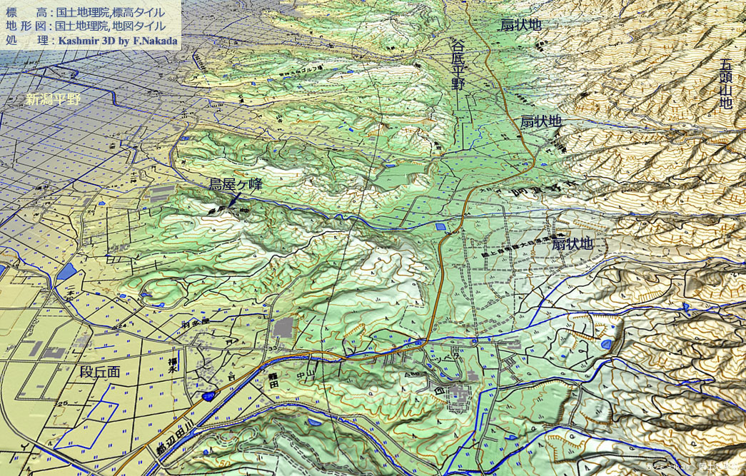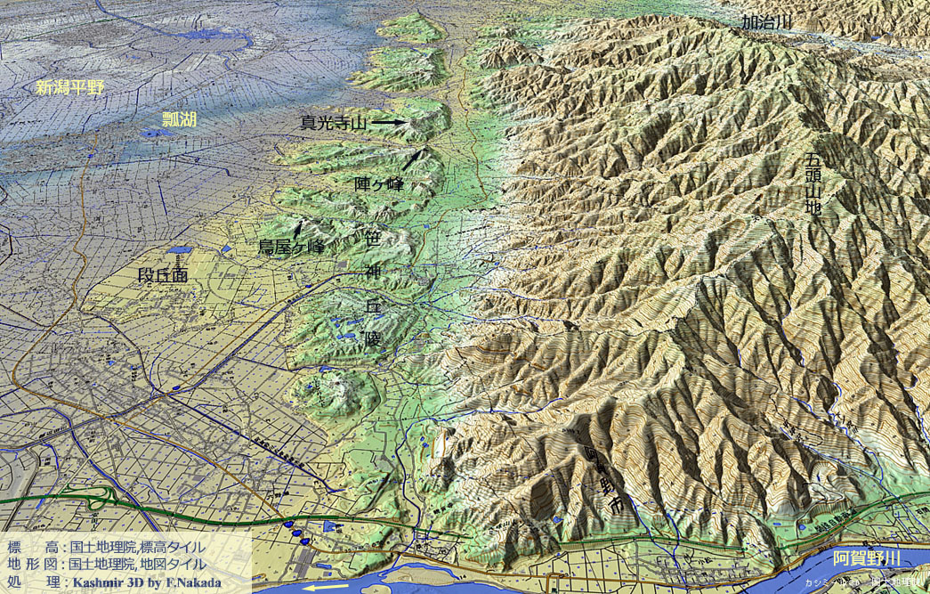 | 新潟県:断層に規制された五頭山地と笹神丘陵 |