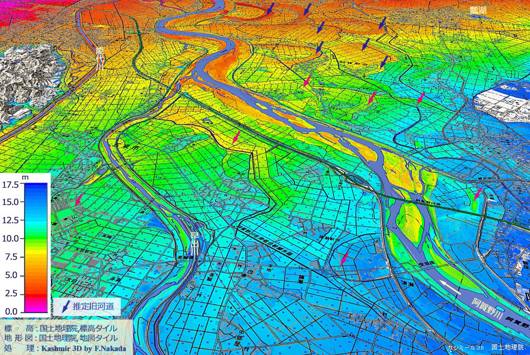 | 地形の三次元イメージ : 阿賀野川の旧河道群(その1) |