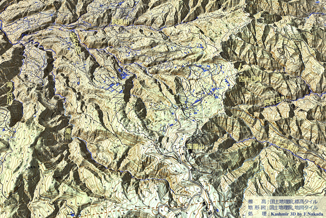 | 地形と地質の三次元イメージ : 笠置山付近 |