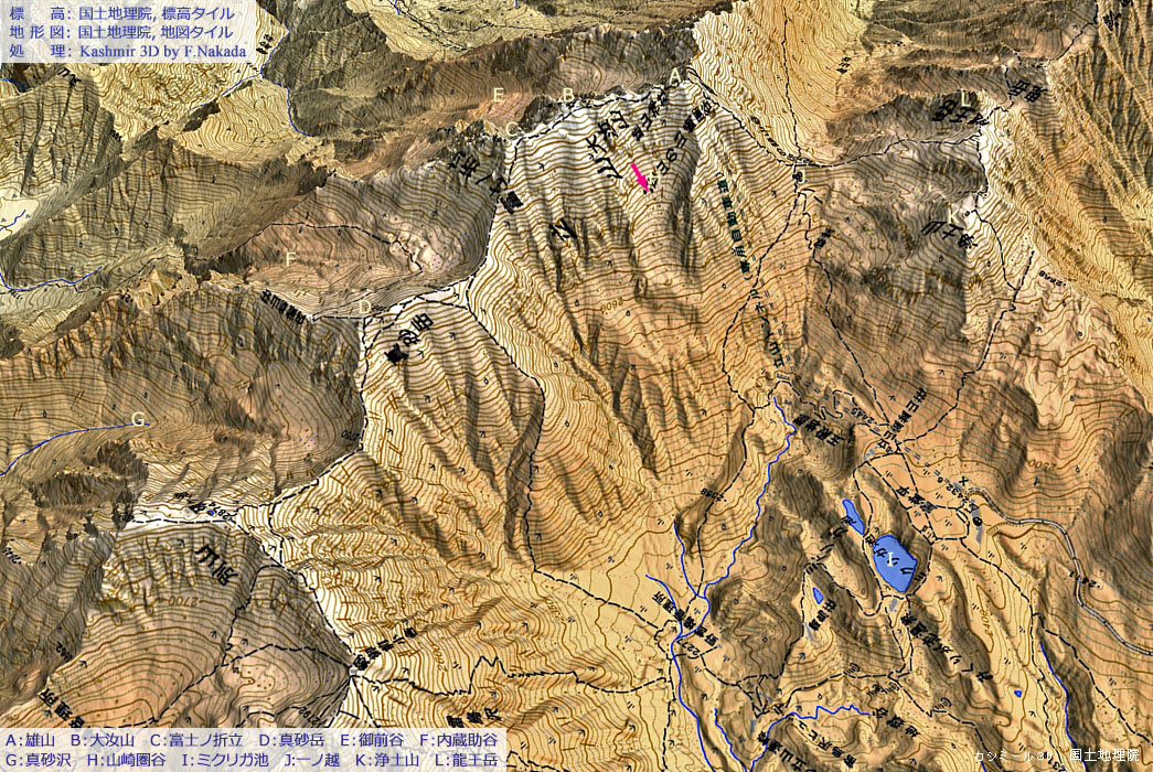 | 地形と地質の三次元イメージ : 御前沢氷河,内蔵助谷氷河 |