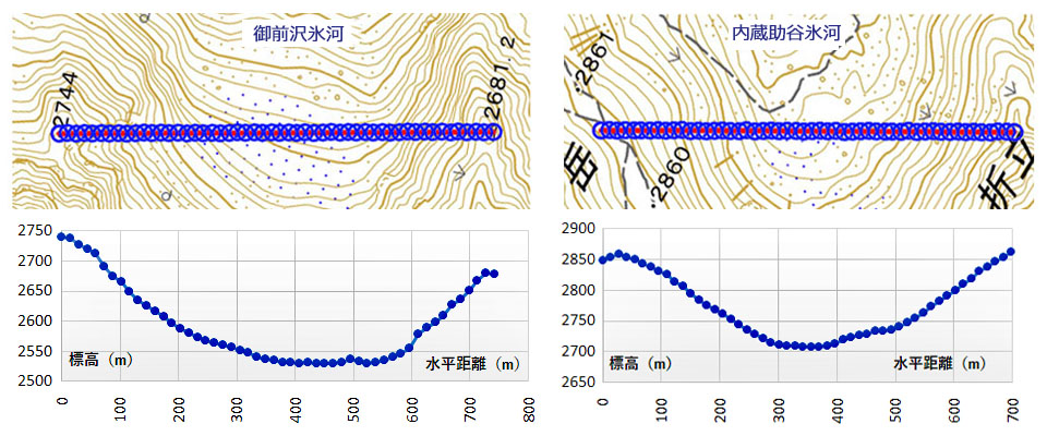 | 【地形断面図】 御前沢氷河,内蔵助谷氷河 |
