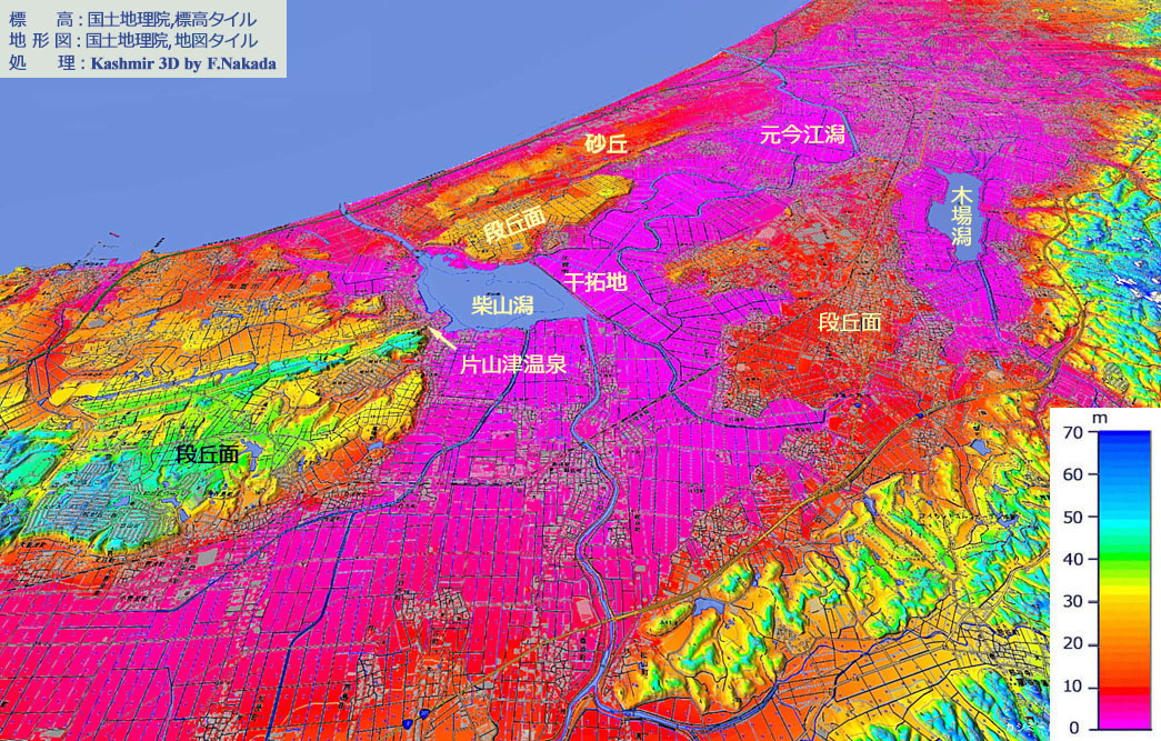 | 地形の三次元イメージ : 加賀三湖(柴山潟・木場潟・元今江潟) |