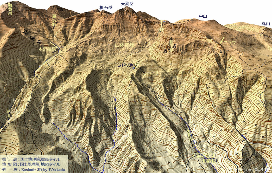 | 地形の三次元イメージ : 天狗岳の山体崩壊地形 |