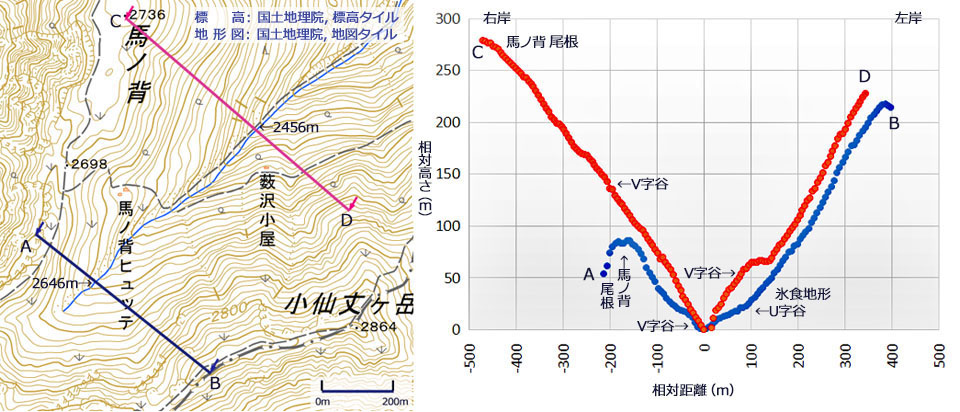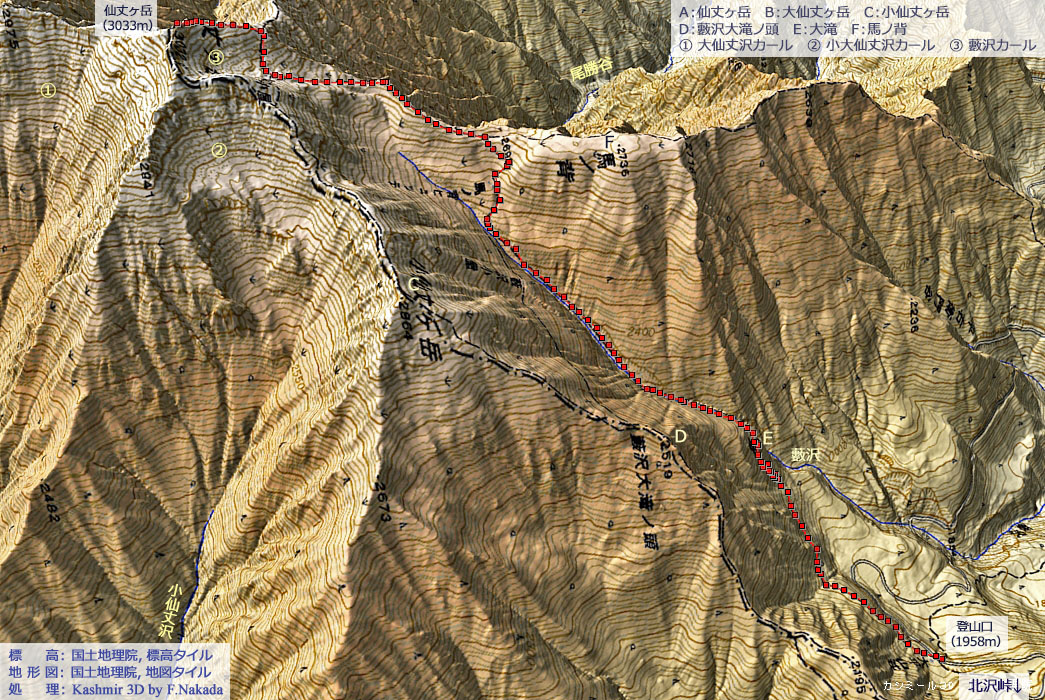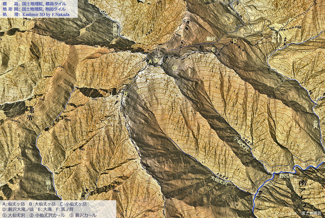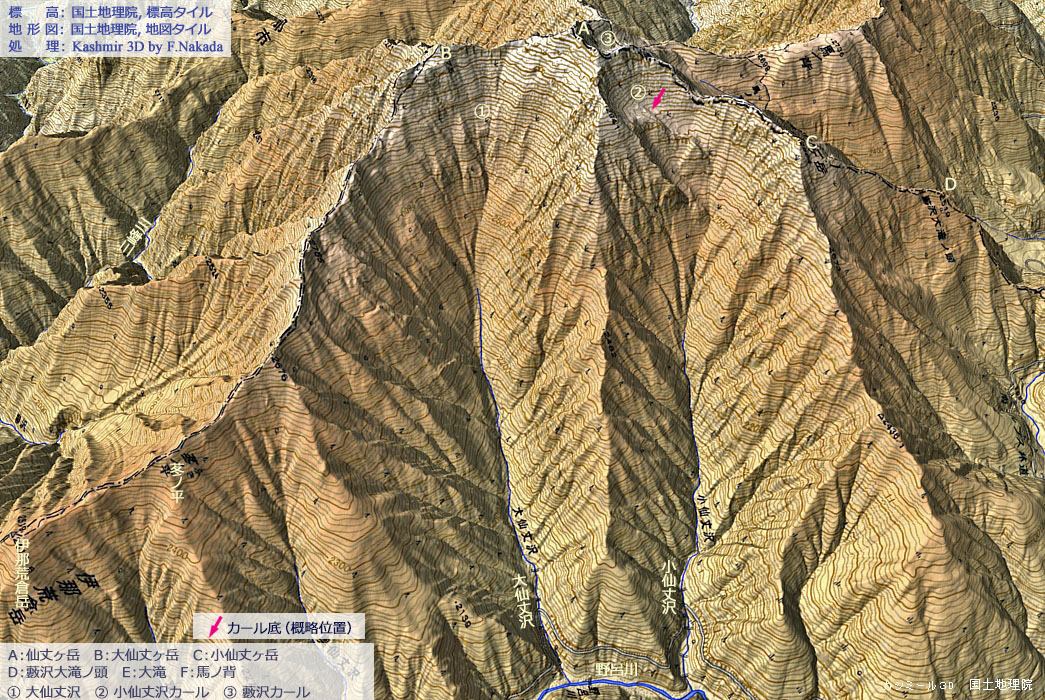 | 地形と地質の三次元イメージ : 大仙丈谷と小仙丈谷カール |