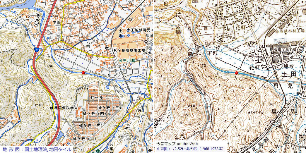| 古地図による地形の変遷 : 可児渓谷付近 |