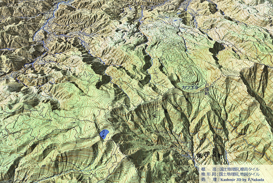 | 標高段彩図の三次元イメージ : 八丁池付近 |