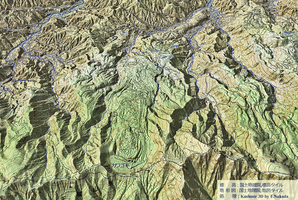 | 地形と地質の三次元イメージ : 八丁池~カワゴ平 |