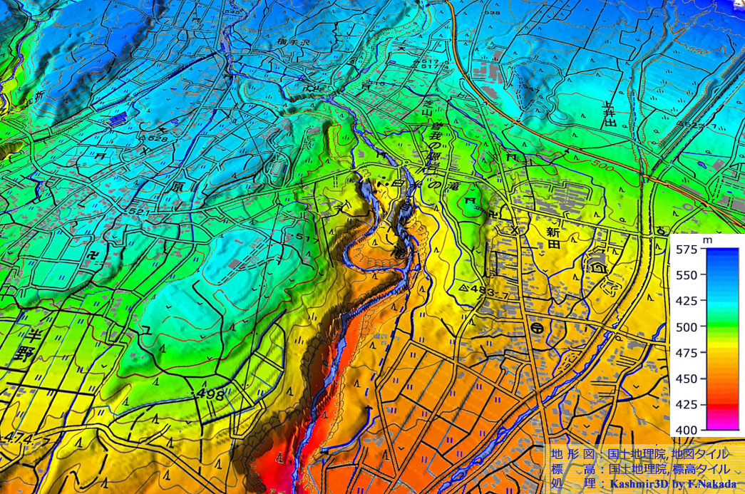 | 地形の三次元イメージ : 白糸の滝,音止の滝 |