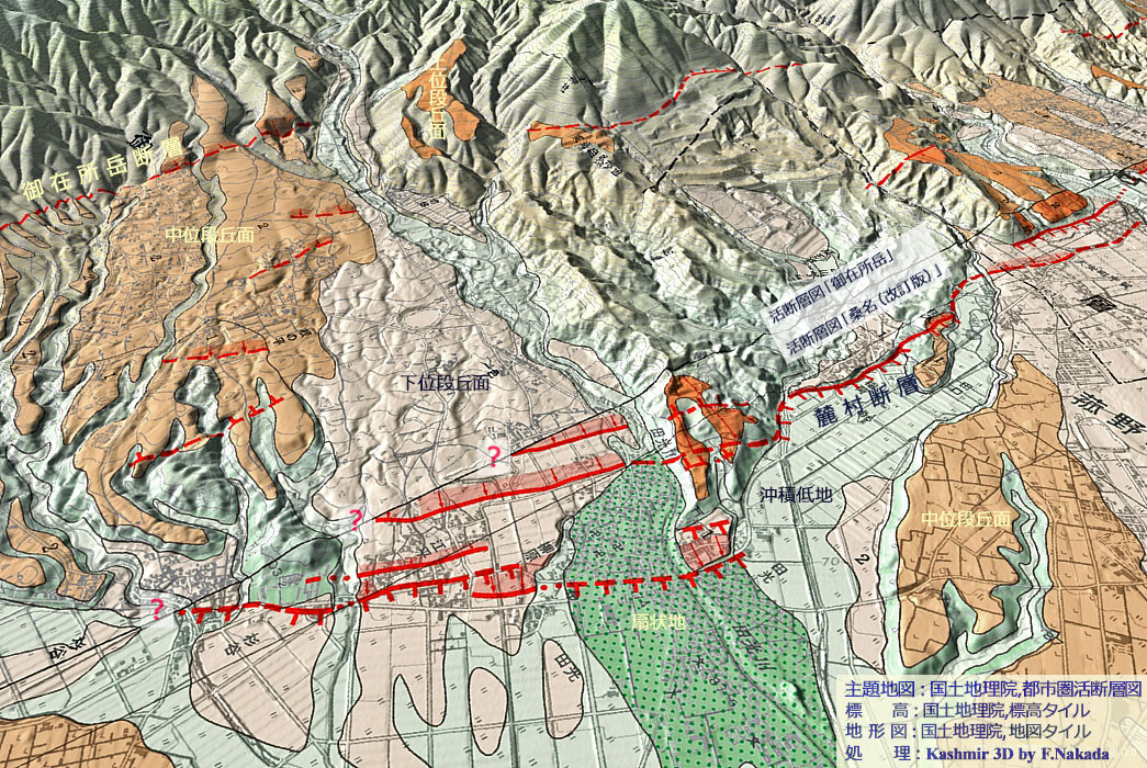 | 地形と地質の三次元イメージ : 鈴鹿東縁断層群(北部) |