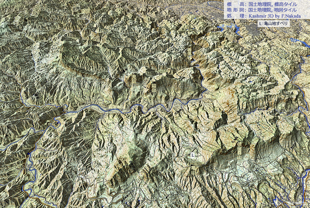 - 「お亀池」と「お亀湿原」は,「亀山(849m)」の西斜面で発生した大規模な斜面の崩壊あるいは地すべりで発生した「移動土塊」に,水が溜まって湿地化したものです。