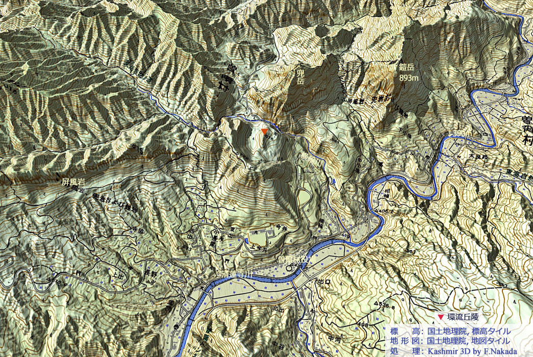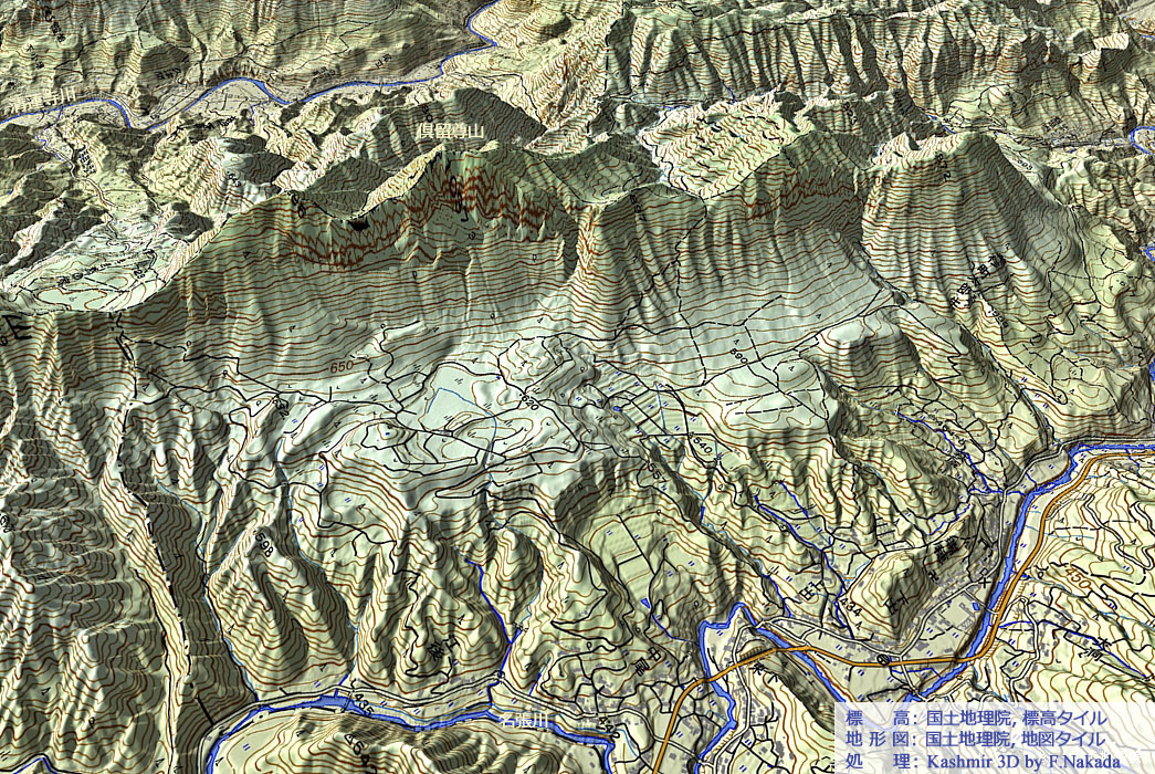 - 山稜の西に存在する断層,東西を流れる「名張川」と「青蓮寺川」の侵食作用,火山角礫岩の持つ柱状節理の崩壊傾向などが総合的に組み合わさって,斜面の崩壊や地すべりが多発したものでしょう。