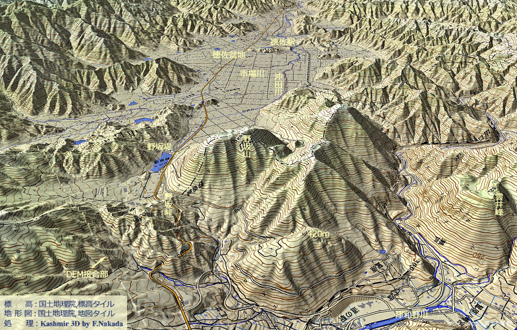 | 地形の三次元イメージ : 徳佐盆地(北部) |
