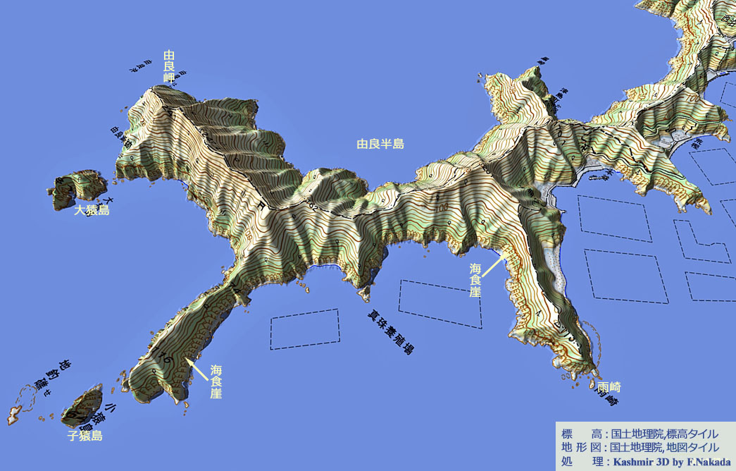 | 地形の三次元イメージ : 由良半島の先端部 |