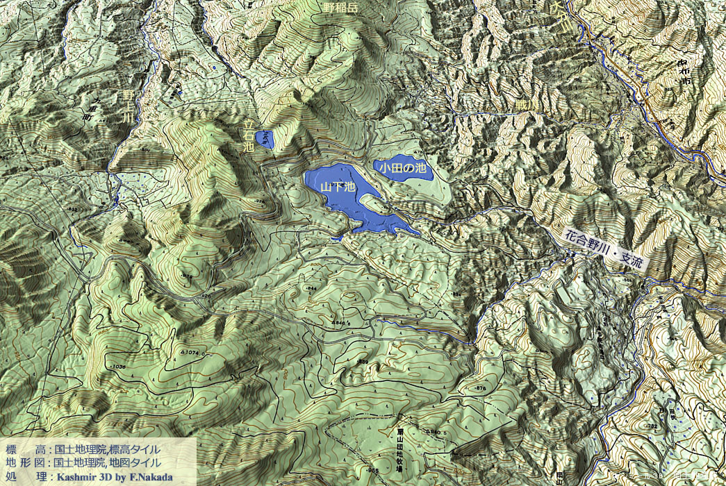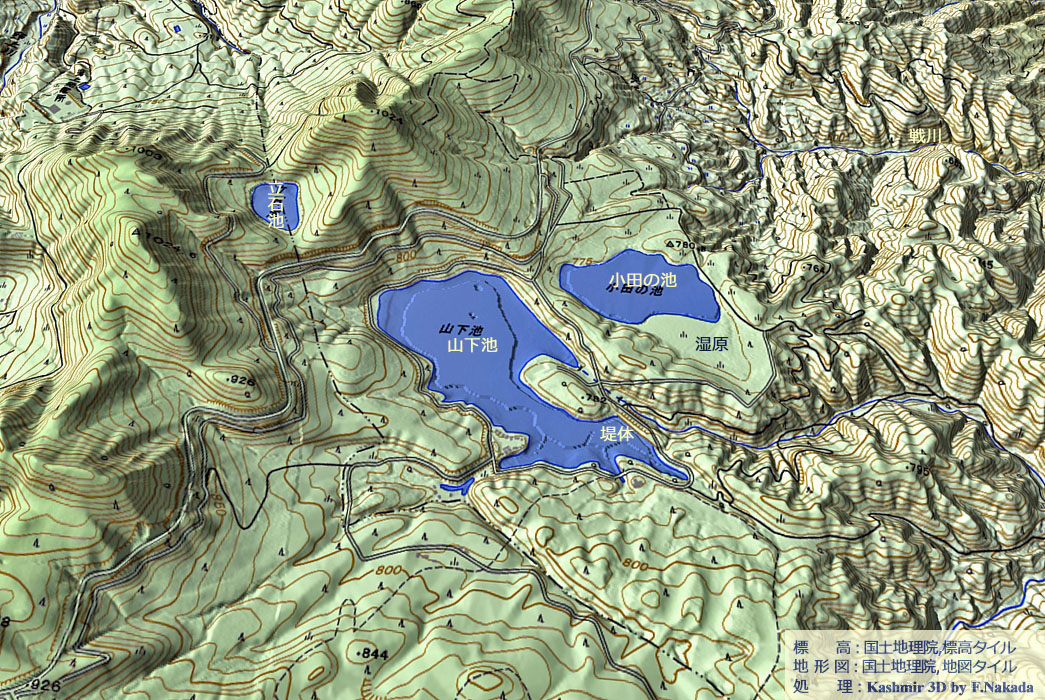 | 地形の三次元イメージ : 小田の池とその周辺部 |