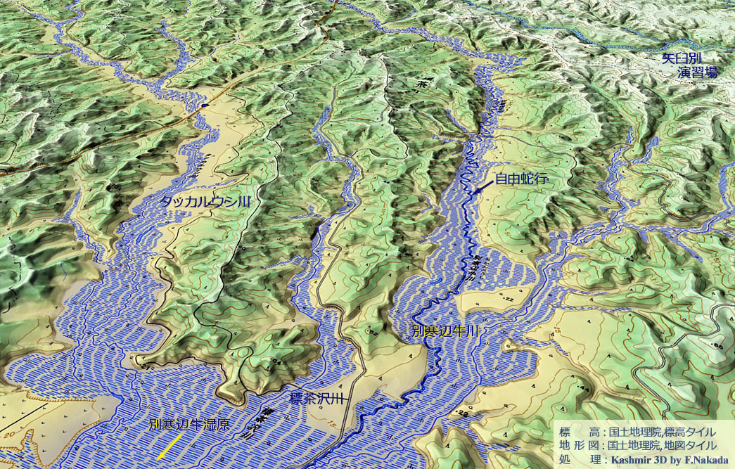 | 地形の三次元イメージ : 別寒辺牛川(べかんべうしがわ) |