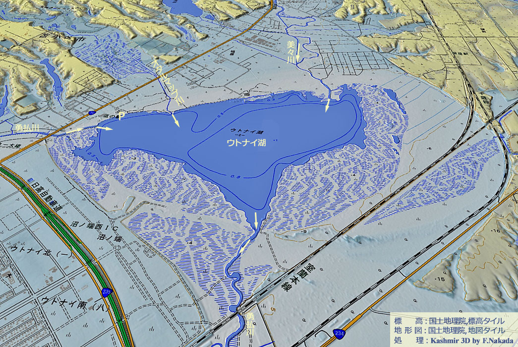 ![]() 元々は水深の浅い入江だったところが,海退(海水面の低下)に伴って,海から切り離された「海跡湖(潟湖)」です。 川水の流入は「勇払川」や「美々川」など3河川,流出は「勇払川」1本のみです。 工業団地,高速道路や鉄道線路など,開発された土地に囲まれています。 しかし,ラムサール条約登録湿地のため,これ以上の劣化は避けられそうです。 |