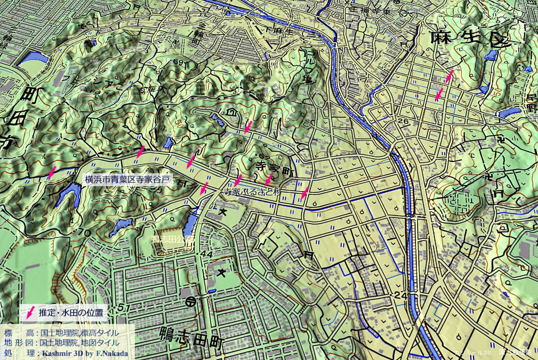 | 地形の三次元イメージ : 横浜市青葉区「寺家(じけ)谷戸」 |