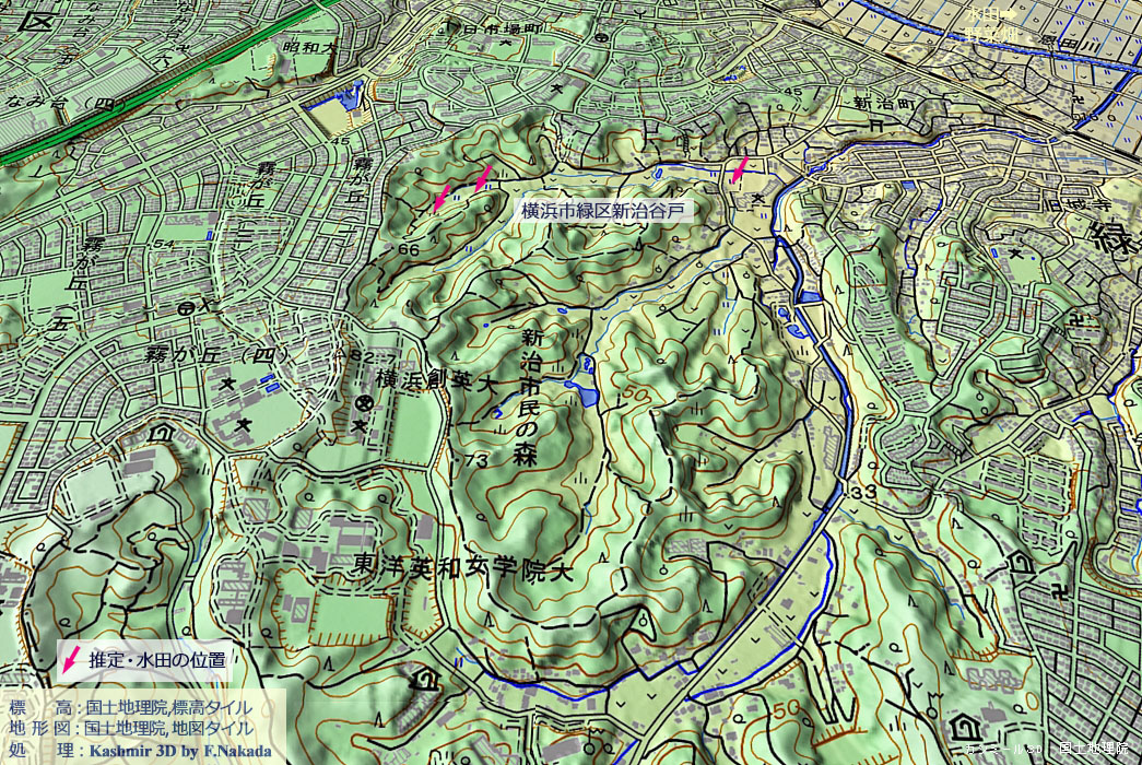 | 地形の三次元イメージ : 横浜市戸塚区舞岡谷戸 |