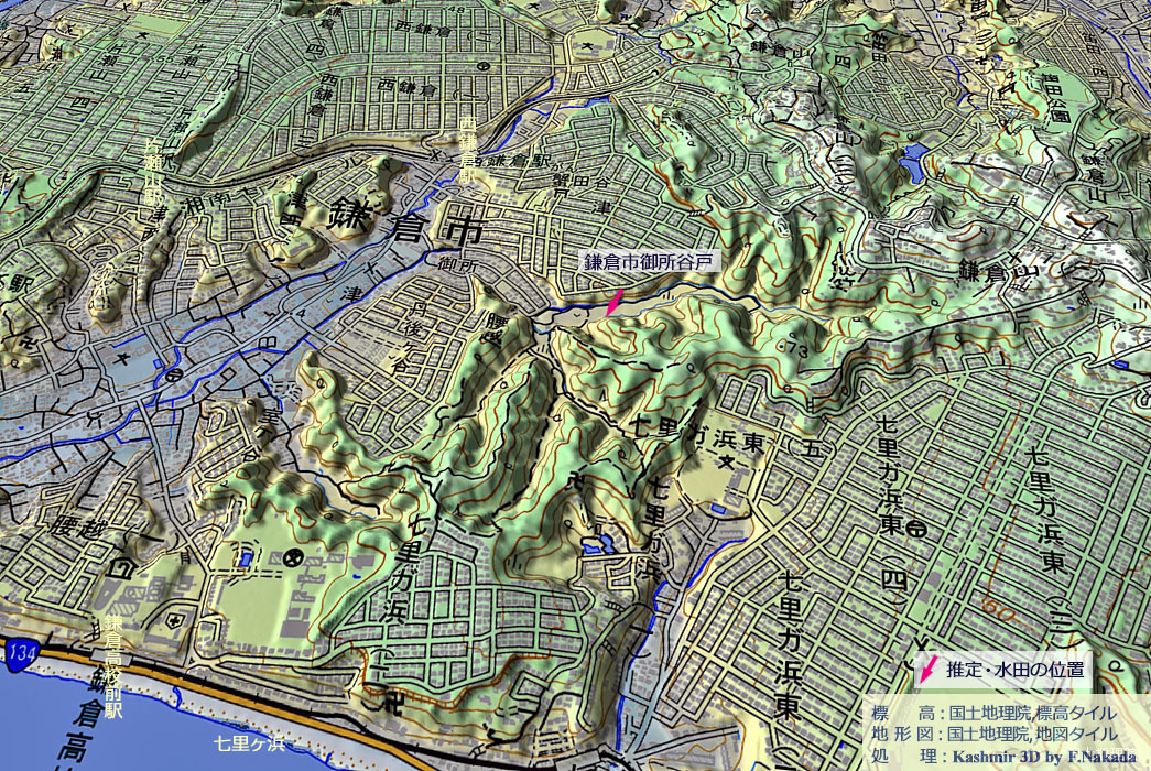 | 地形の三次元イメージ : 鎌倉市御所谷戸 |