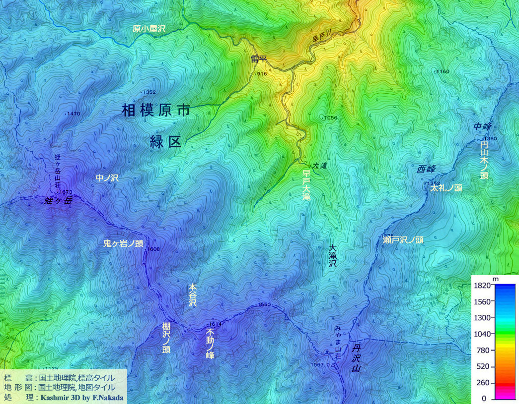 | 案内用地形図(段彩図) : 相模川水系早戸川流域 |