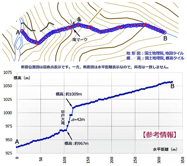 | 標高データによる河床縦断図(概略)・記事・引用情報・参考情報 | |