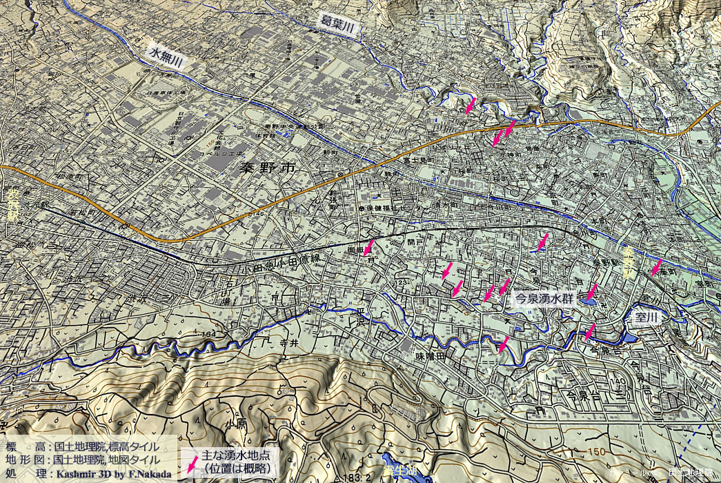 | 地形の三次元イメージ : 今泉湧水群など |