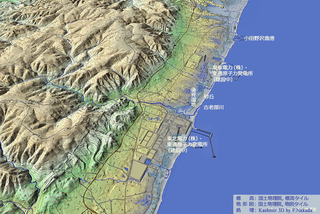 | 標高段彩図の三次元イメージ : 東京電力,東通原子力発電所 |