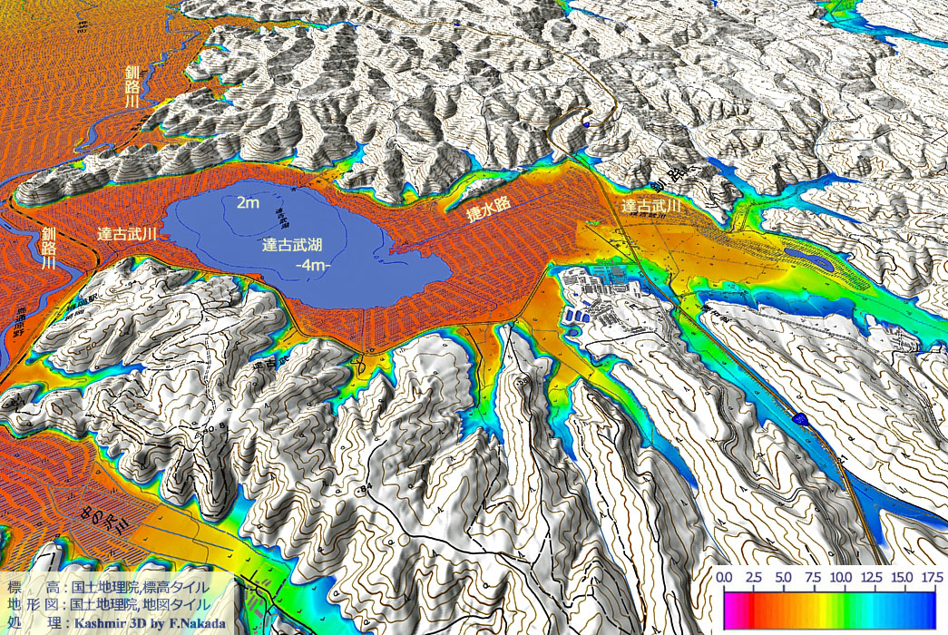 | 地形の三次元イメージ : 達古武湖 |