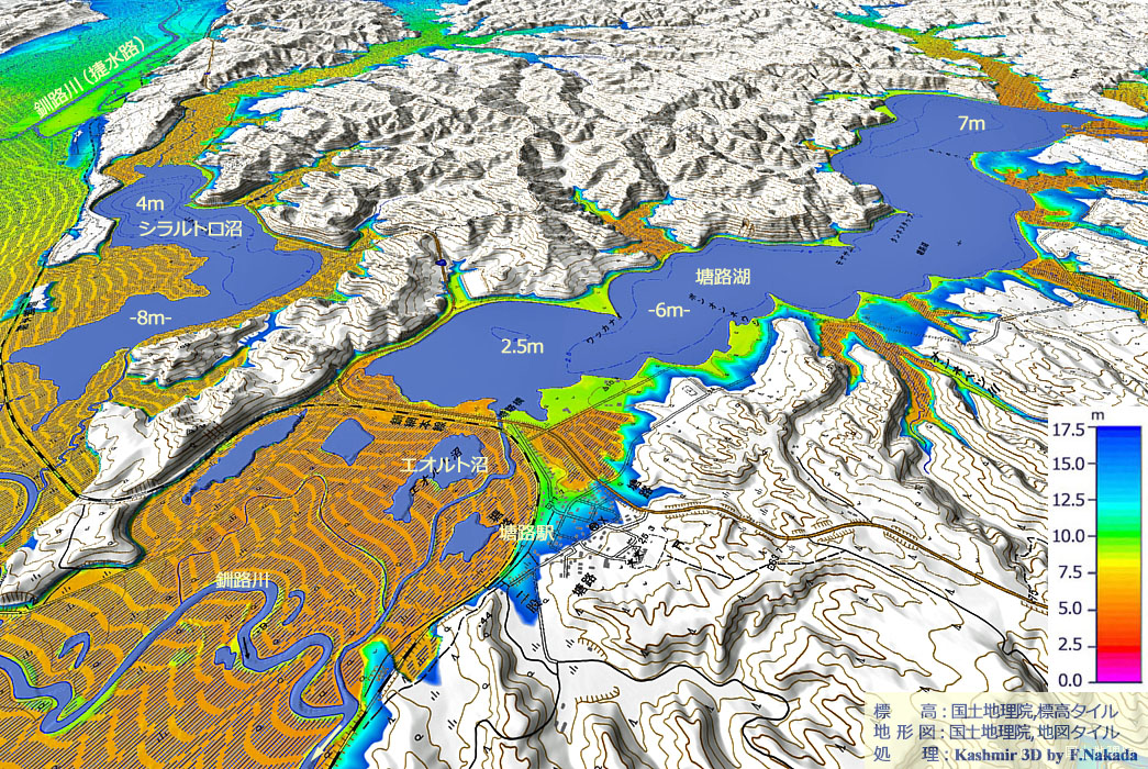 | 地形の三次元イメージ : 塘路湖,シラルトロ沼 |
