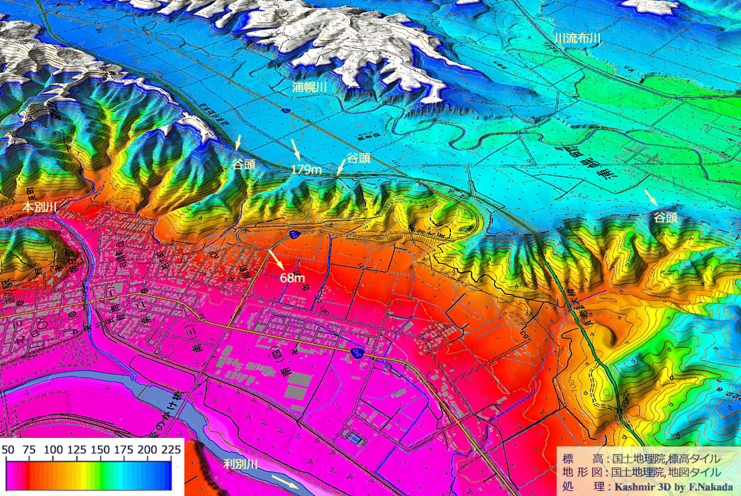 | 地形と地質の三次元イメージ : 利別川と浦幌川 |