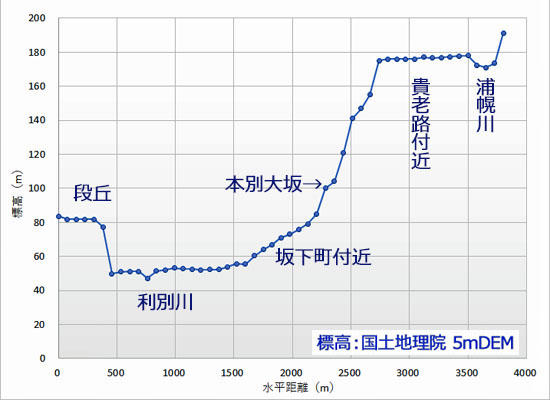 ‼マウスオーバー‼ 地図上にマウスを乗せてください。産総研・地質調査総合センターの「1/20万 シームレス地質図(出典,下記)」を表示します。![]() 「河床勾配」の緩い「浦幌川」は,崖の脇だというのに「自由蛇行」しながら,ゆったりと流れています。 一方,眼下はるかを流れる「利別川」も,それはそれで「自由蛇行」しつつ,のんびりと流れています。 |