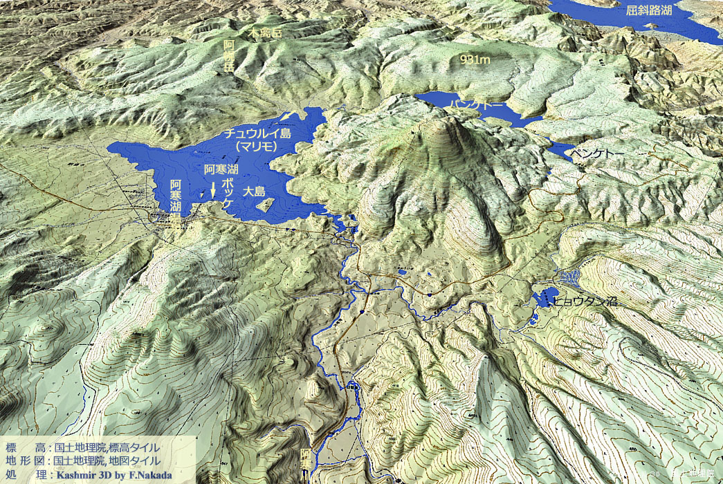 | 地形の三次元イメージ : 雄阿寒岳火山 |