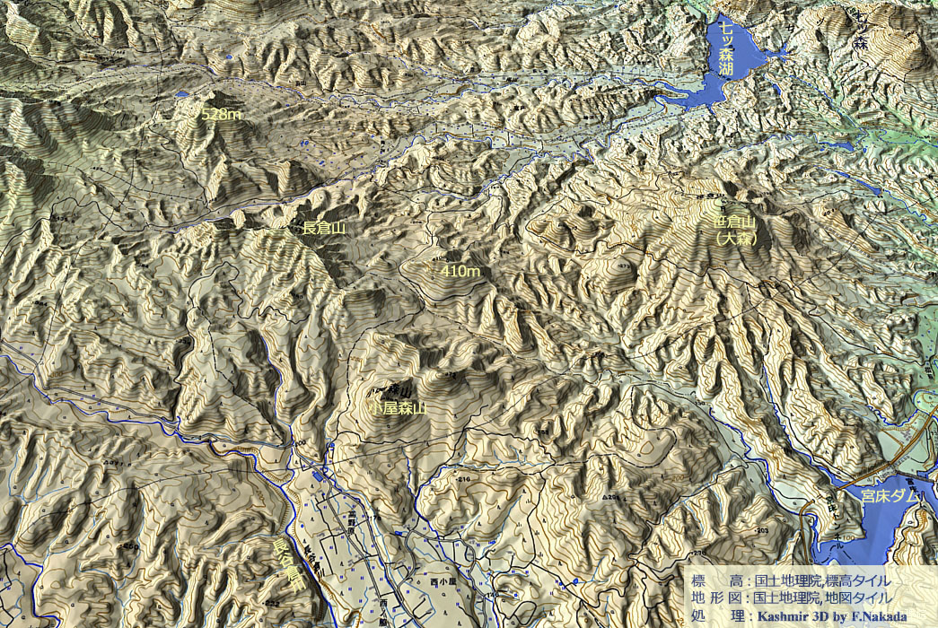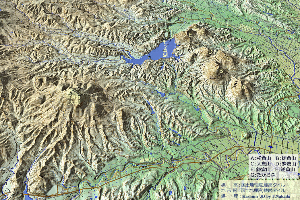 | 地形と地質の三次元イメージ : 七ツ森火山群と笹倉山 |
