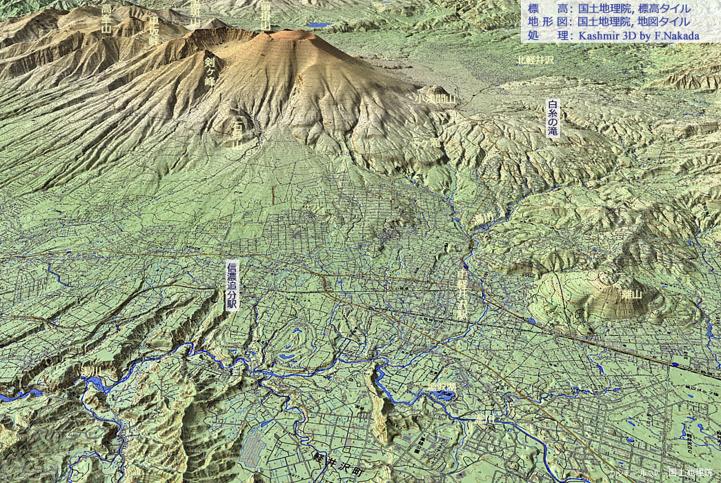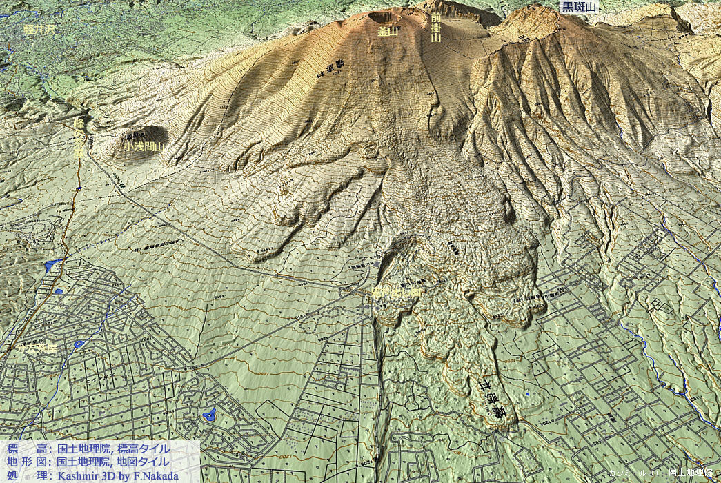 | 地形と地質の三次元イメージ : 浅間火山の北斜面 | |