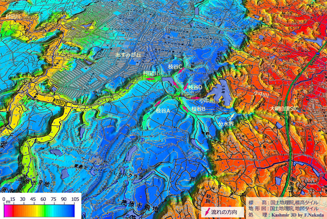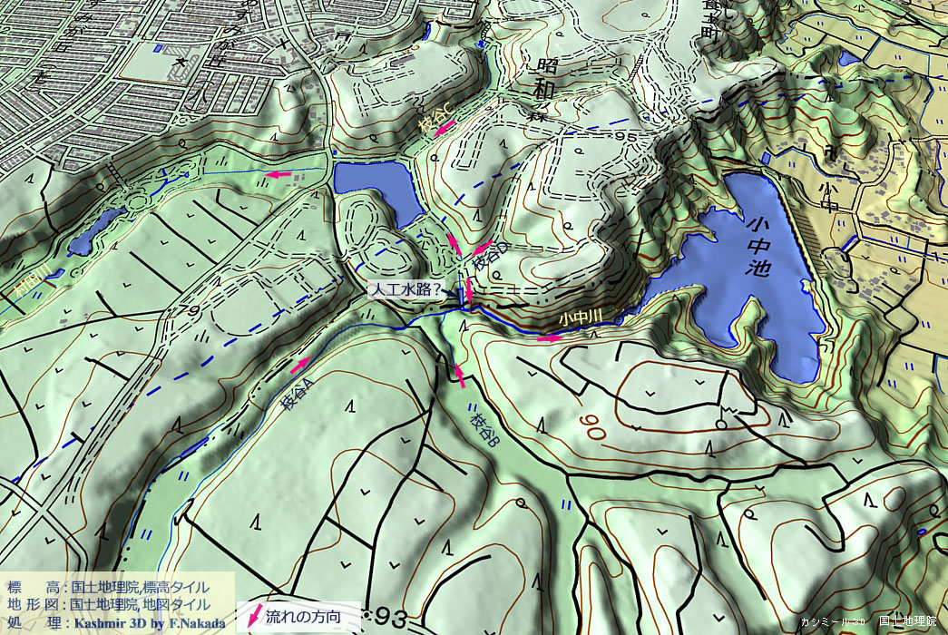| 地形の三次元イメージ : 小中川及び周辺部 |