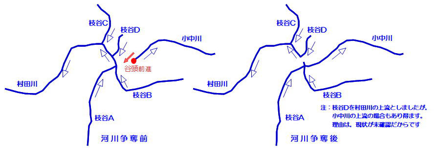 ![]() 河川争奪の結果奪い取った「村田川・本流」の部分は,河床勾配が急なので「人工水路」になっているかもしれません。 |